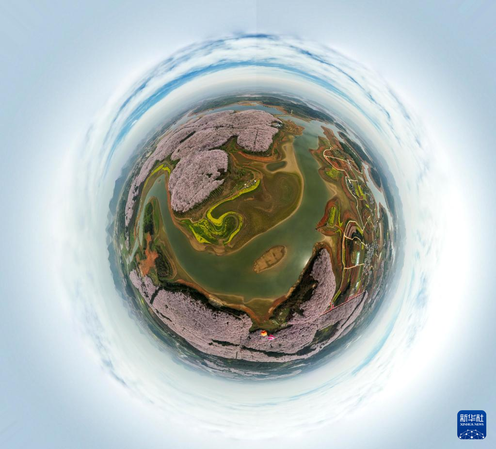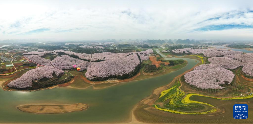 这是3月21日拍摄的贵州省贵安新区樱花园(无人机全景照片)。