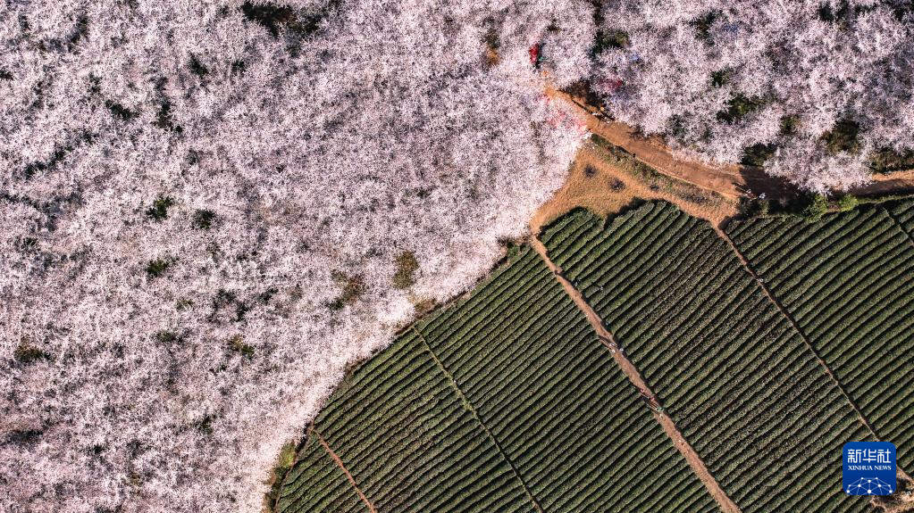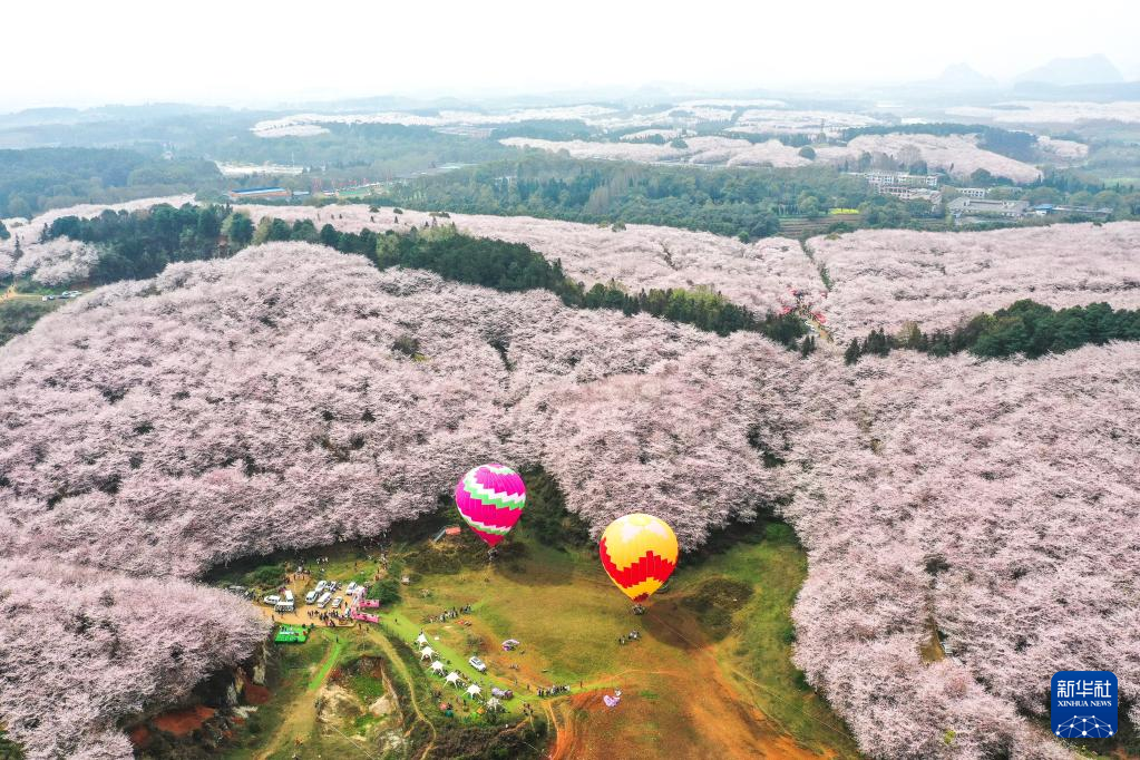 3月21日拍摄的贵州省贵安新区樱花园(无人机照片)。