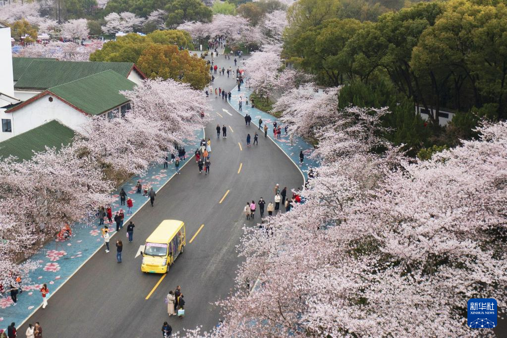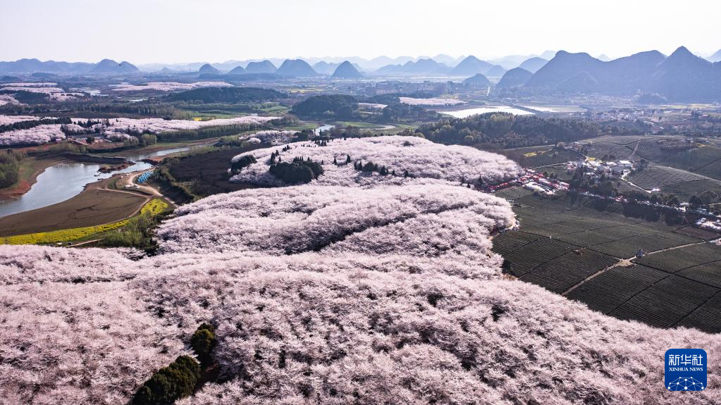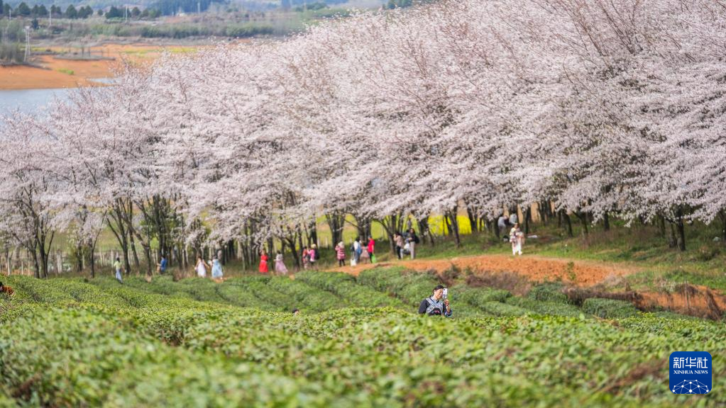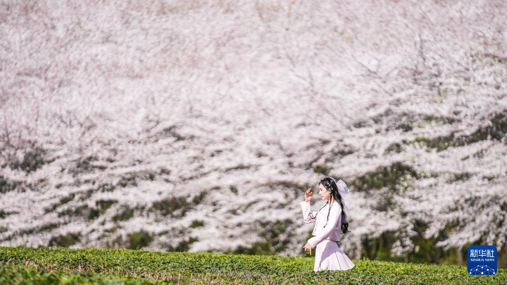近日,贵州省贵安新区樱花园内的2.4万亩樱花竞相绽放,如雪似霞,吸引游客前来赏花观光。