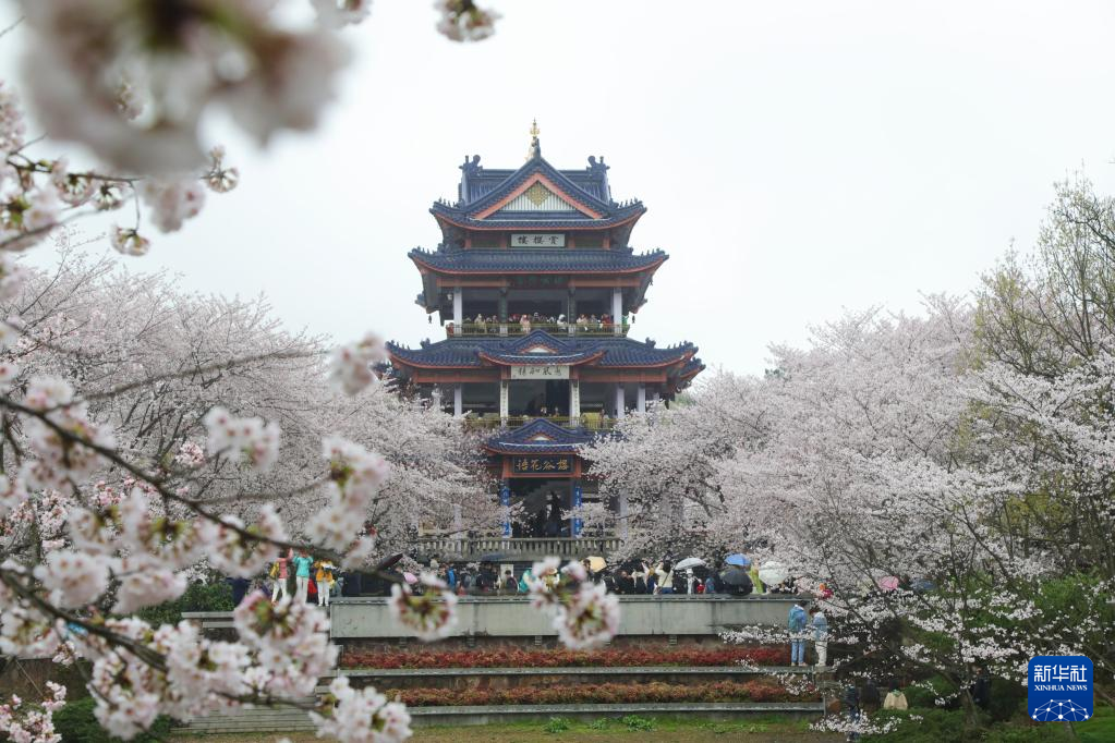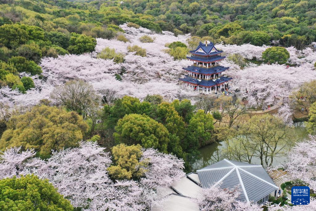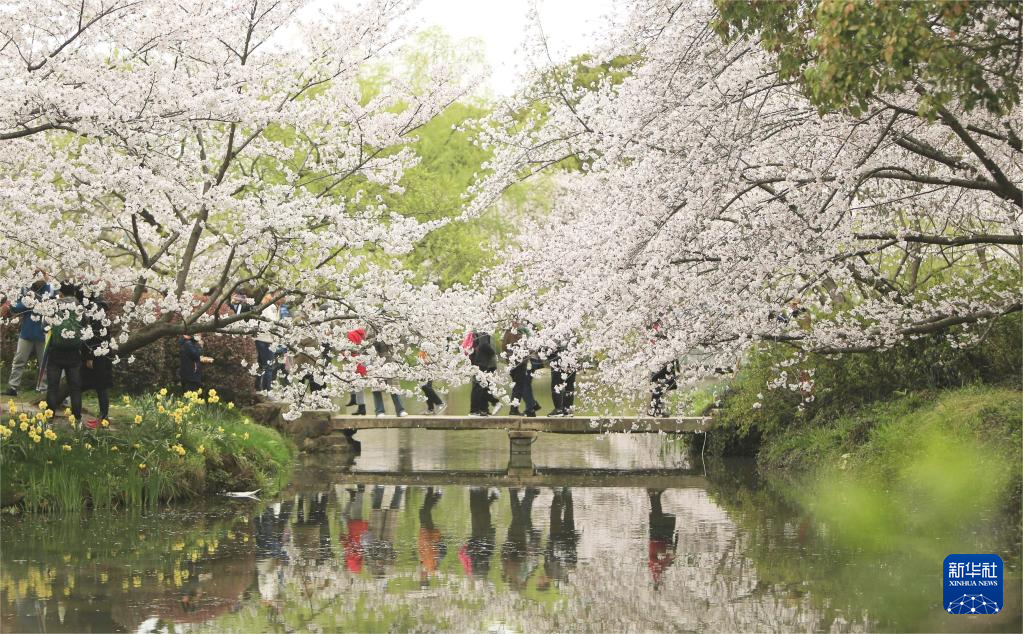 连日来,江苏无锡太湖鼋头渚景区樱花烂漫,吸引市民游客前来赏花游玩。