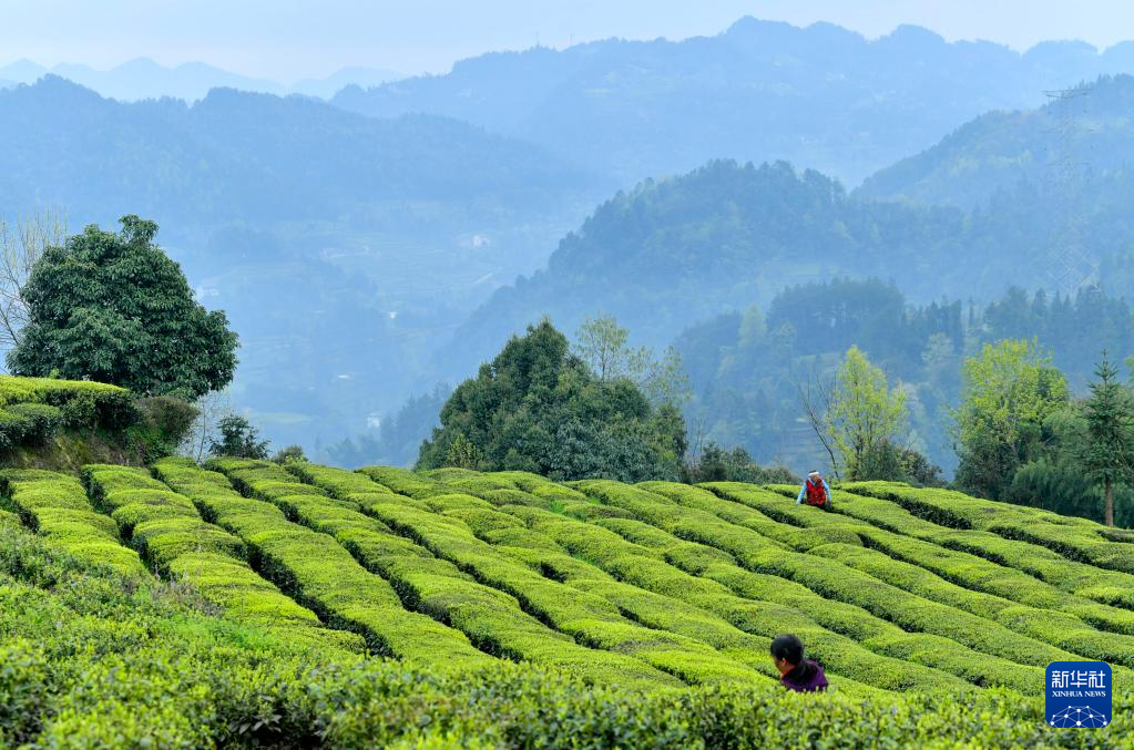 4月2日,茶农在湖北省宣恩县万寨乡的茶园里采摘茶叶。