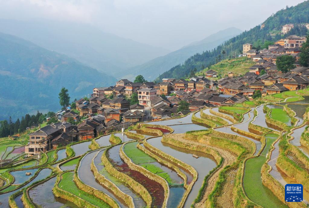 5月6日拍摄的贵州省从江县加榜乡加车村的梯田(无人机照片)。