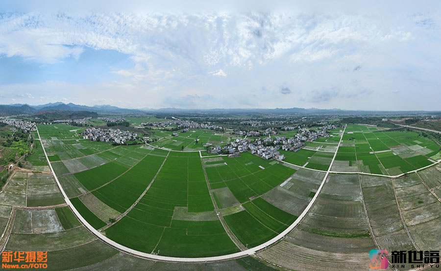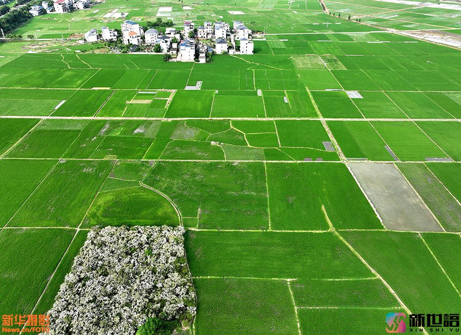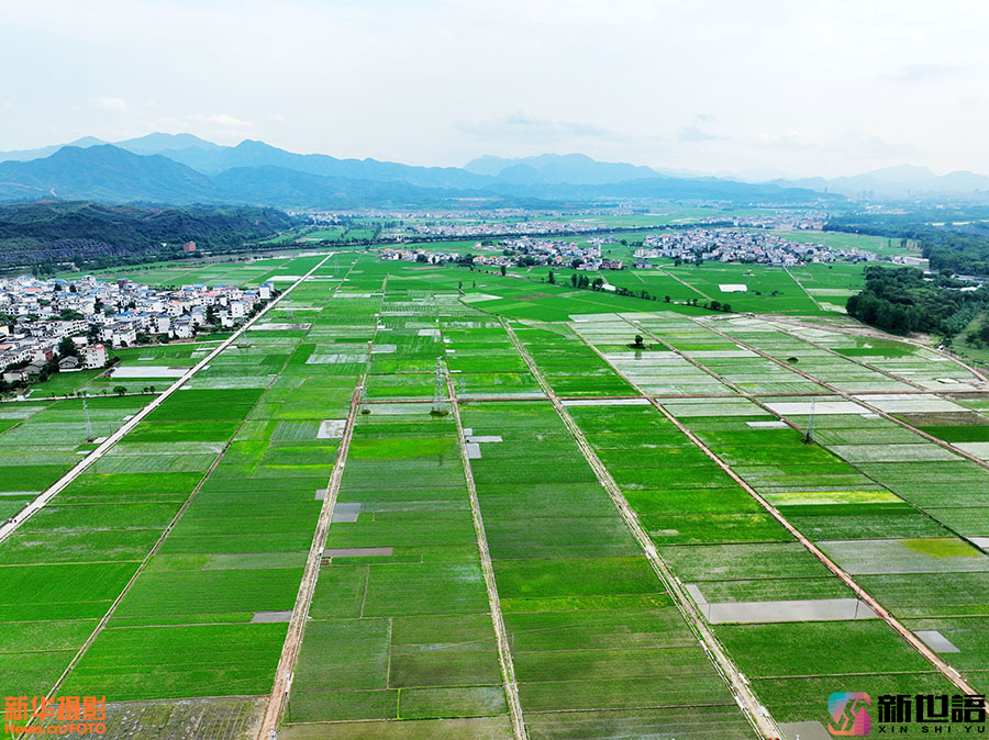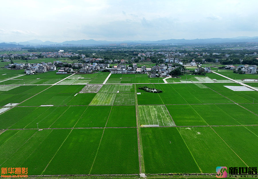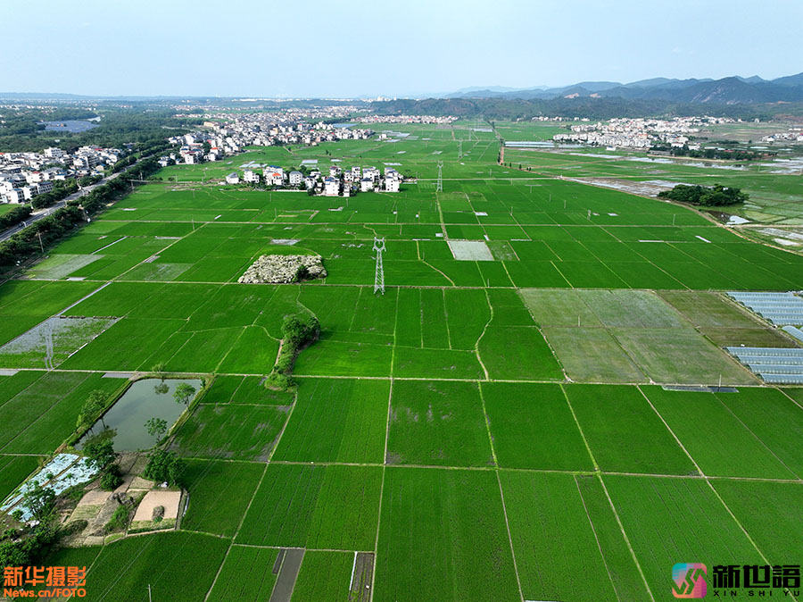 初夏时节,江西省遂川县枚江镇田野生机盎然,早稻长势喜人。从空中俯瞰,阡陌纵横,满眼葱绿,勾勒出一幅幅迷人的田园风光画。 新世语/李建平(声明:凡带有水印的图片,系版权图片,受法律保护,未经许可请勿转载。)