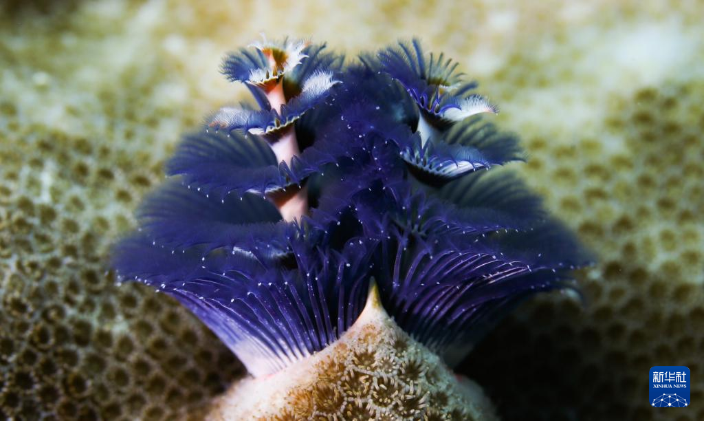 这是在蜈支洲岛海域海洋牧场拍摄的圣诞树管虫(2021年5月23日摄)。