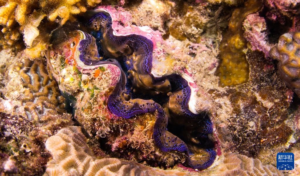 这是在蜈支洲岛海域海洋牧场拍摄的砗磲(5月17日摄)。