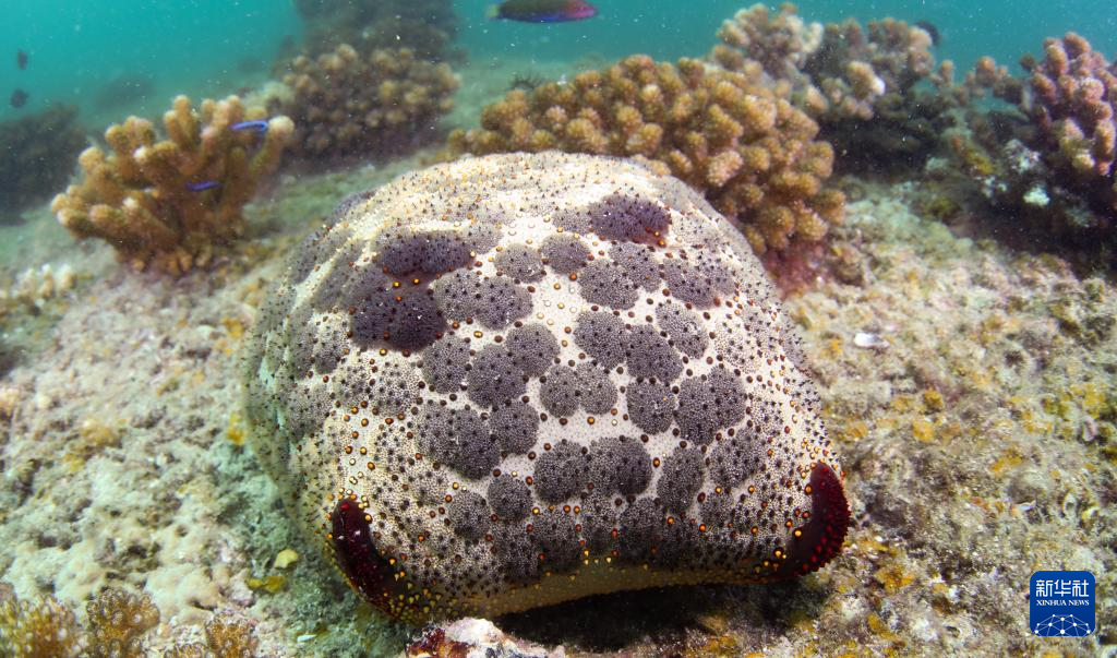 这是在蜈支洲岛海域海洋牧场拍摄的面包海星(5月16日摄)。