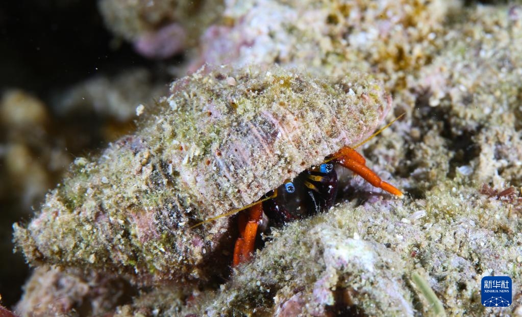 这是在蜈支洲岛海域海洋牧场拍摄的寄居蟹(2021年5月24日摄)。