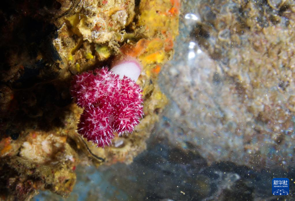 这是在蜈支洲岛海域海洋牧场沉船鱼礁内拍摄的软珊瑚(5月16日摄)。