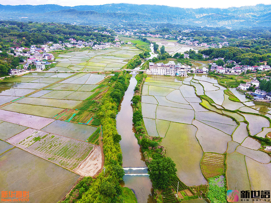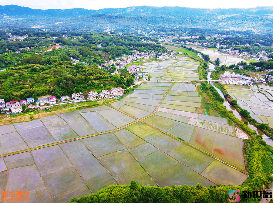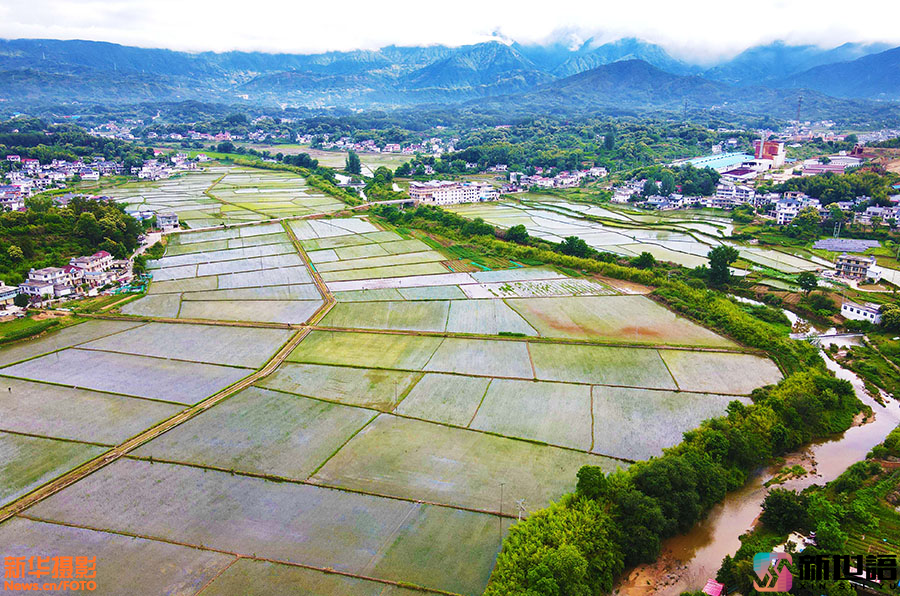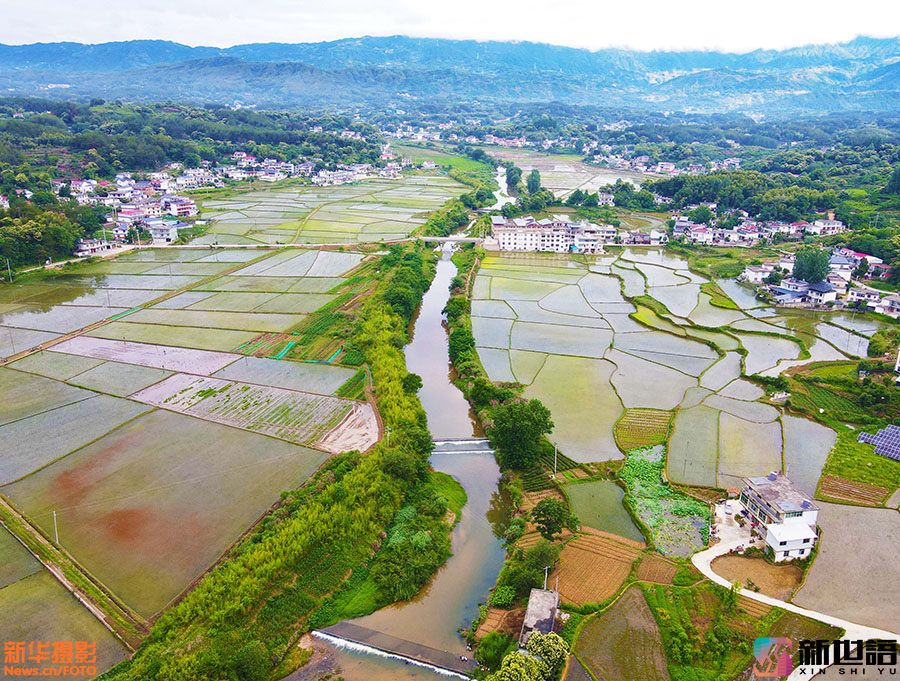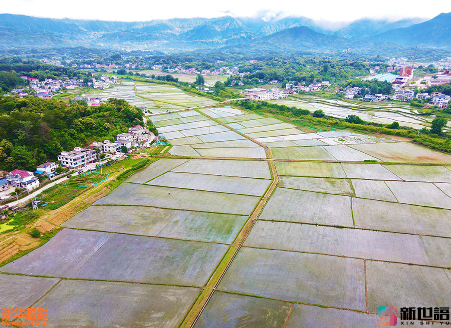 近日,安徽省安庆市岳西县温泉镇资福村一带,阡陌纵横、蓄水充盈的稻田与苍翠的青山、错落有致的民居交相辉映,构成一幅秀美的乡村田园画卷。新世语/吴均奇(声明:凡带有水印的图片,系版权图片,受法律保护,未经许可请勿转载。)