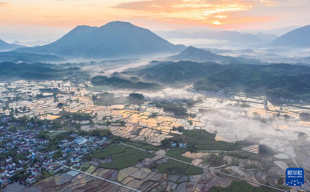 宣城市旌德县兴隆镇三山村晨景(无人机照片)。新华社发(江建兴摄)