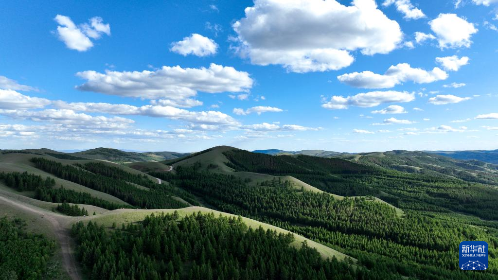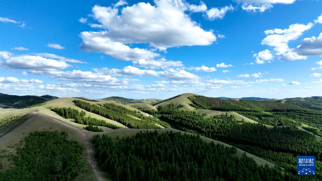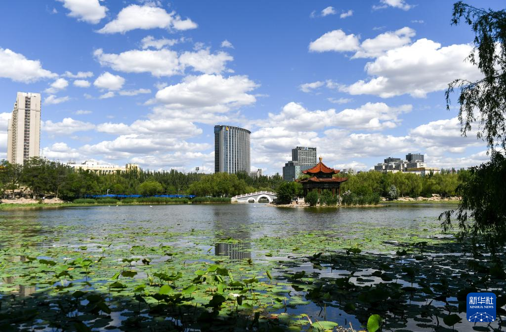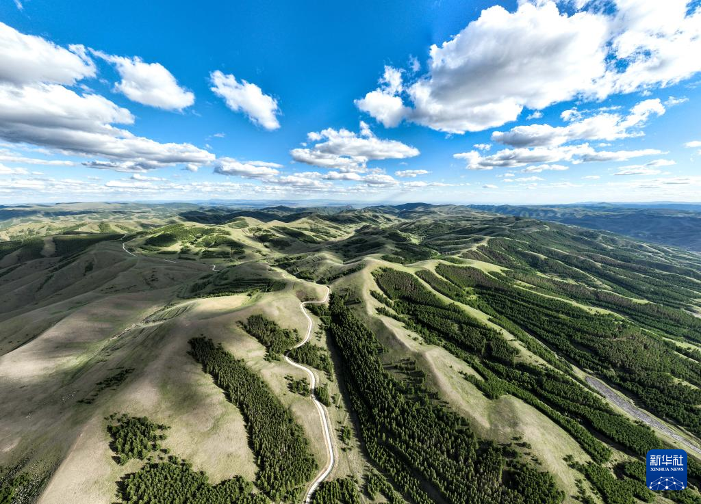 夏日时节,内蒙古呼和浩特天气晴朗,蓝天、白云与青山碧水组成一幅美丽的生态画卷。