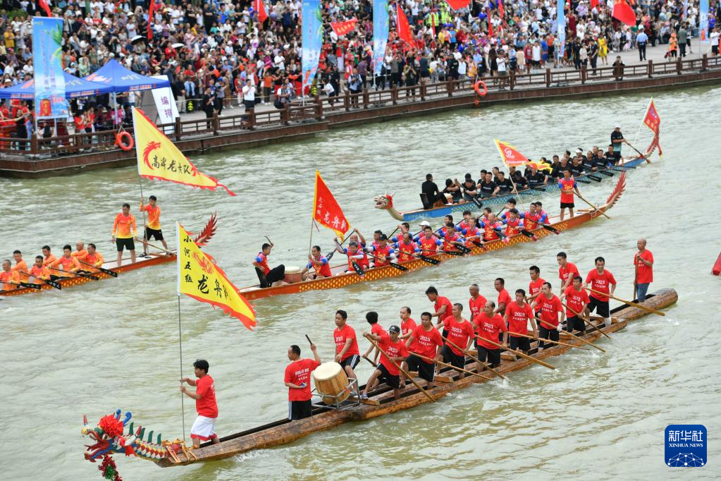 端午小长假期间,人们进行龙舟竞渡和巡游活动,在运动快乐中体验传统民俗。