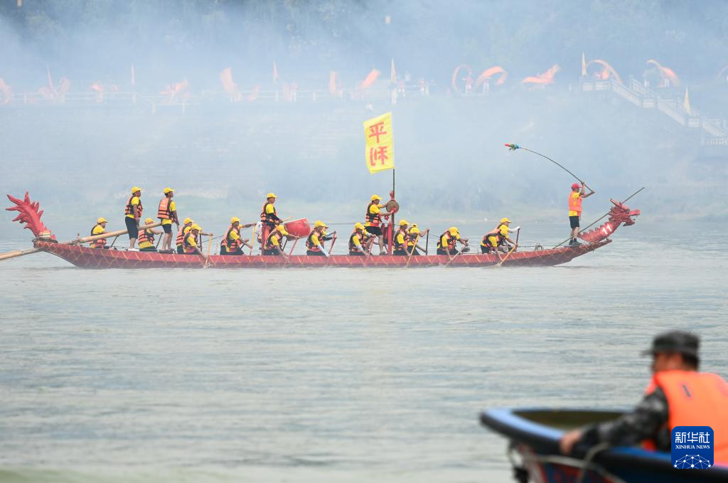 6月22日,重庆市酉阳土家族苗族自治县酉水河镇河湾村,参赛选手进行龙舟比赛。