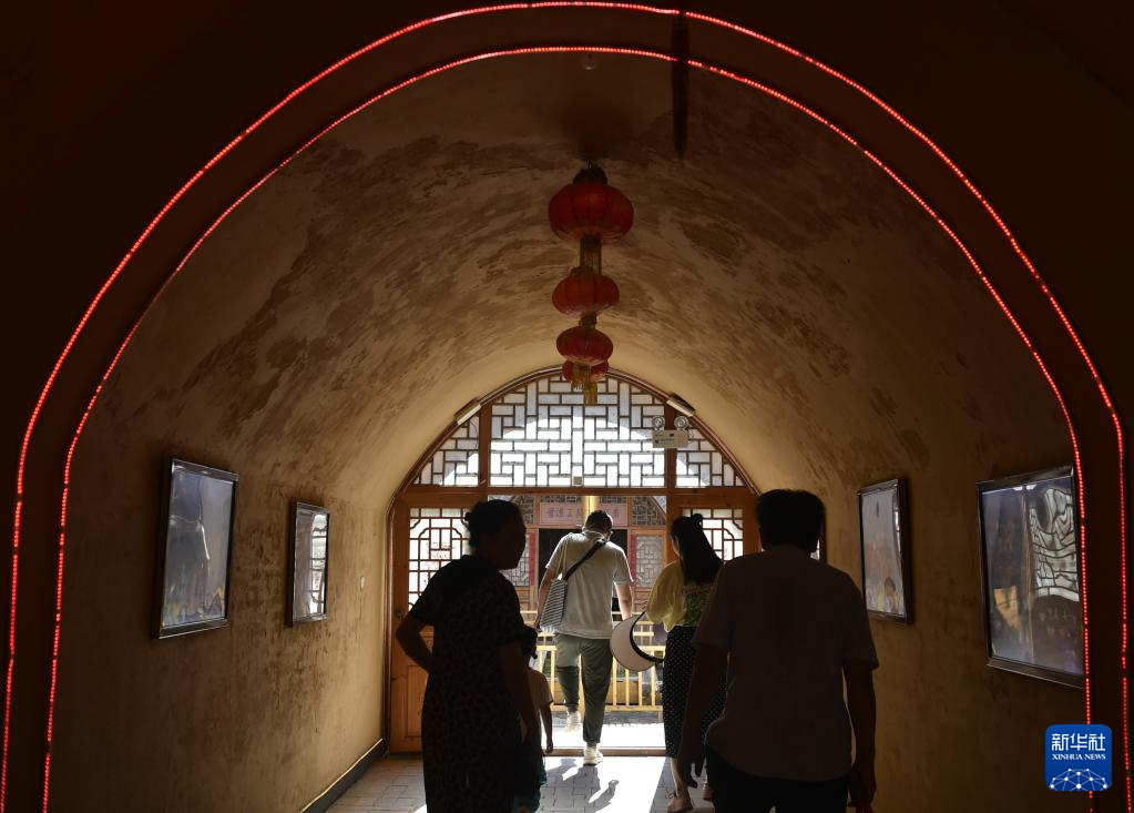 6月23日,游人在三门峡市陕州地坑院景区内游览。