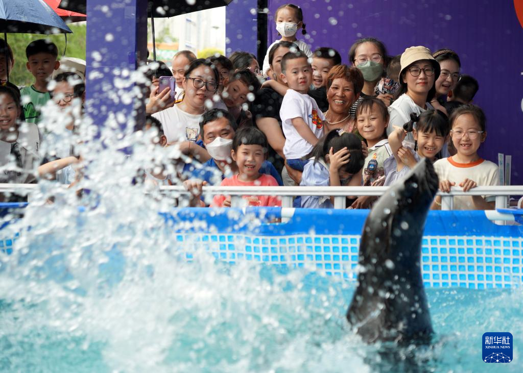 6月24日,浙江省乐清市端午嘉年华活动现场,市民观看海狮表演。