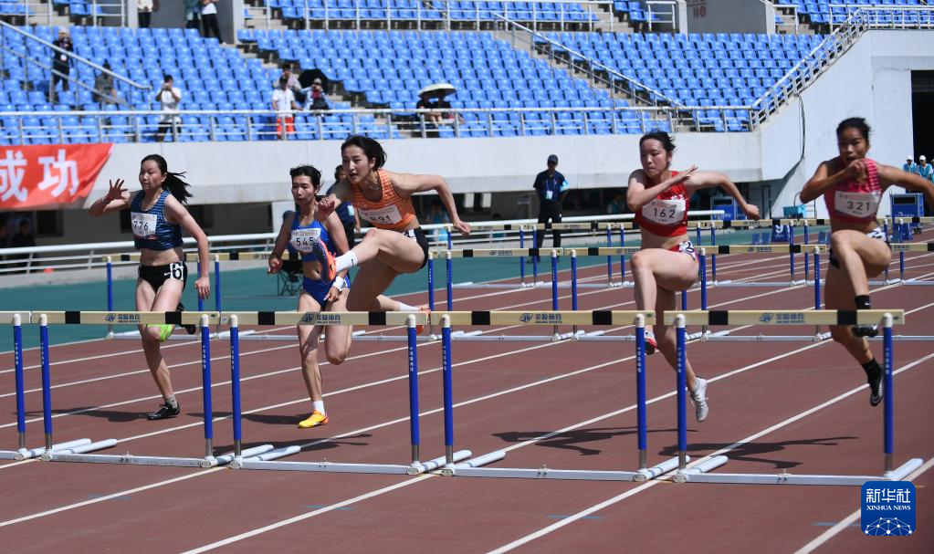 6月28日,参赛选手在女子七项全能的100米栏比赛中。