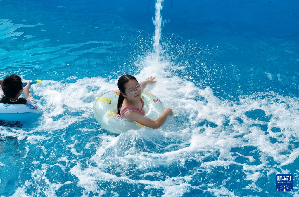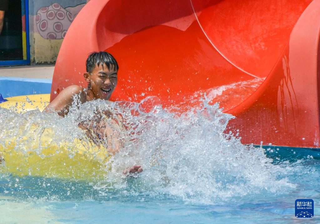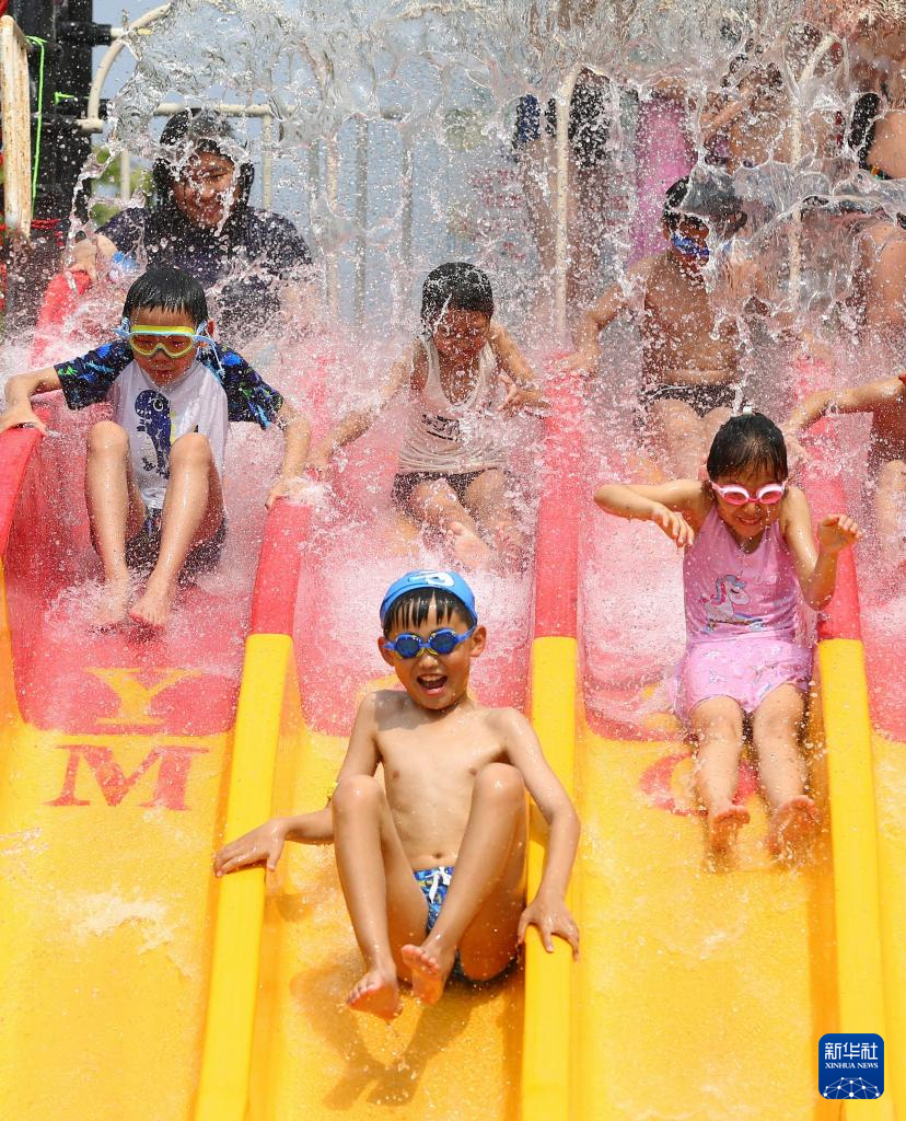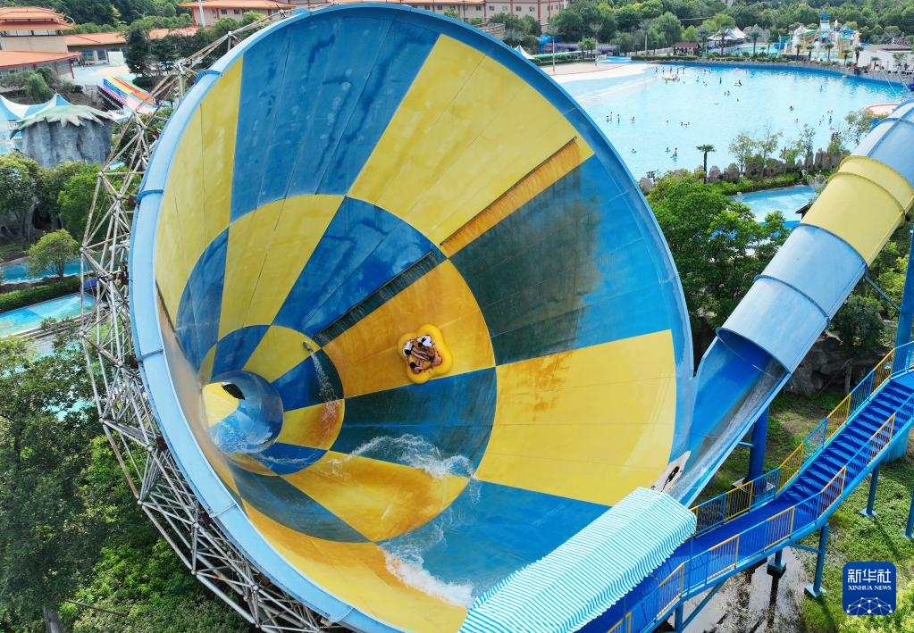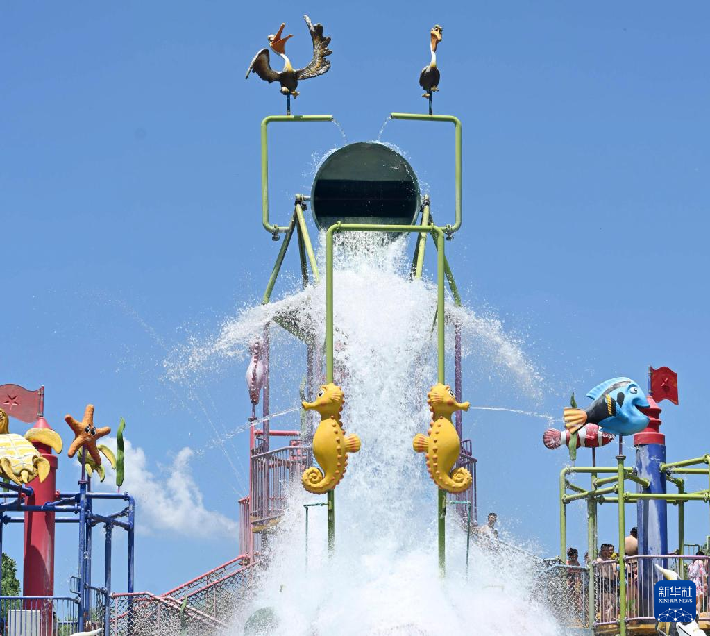 炎炎夏日,人们前往水上乐园,体验趣味水上活动,戏水消暑,享受清凉。