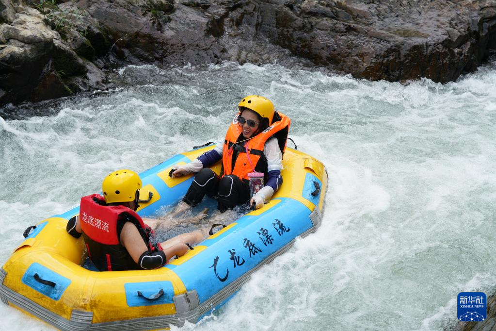 7月1日,游客在湖南省怀化市通道侗族自治县龙底河漂流。