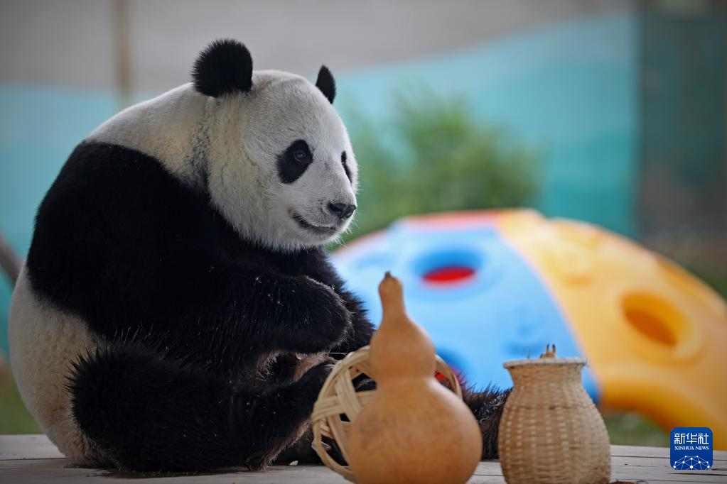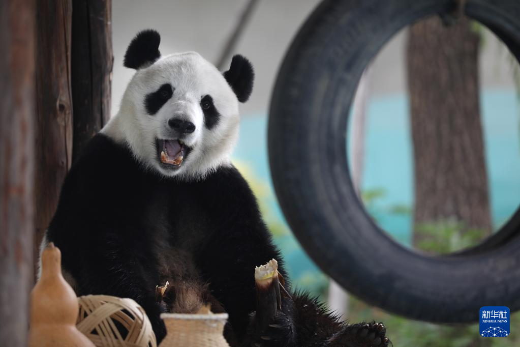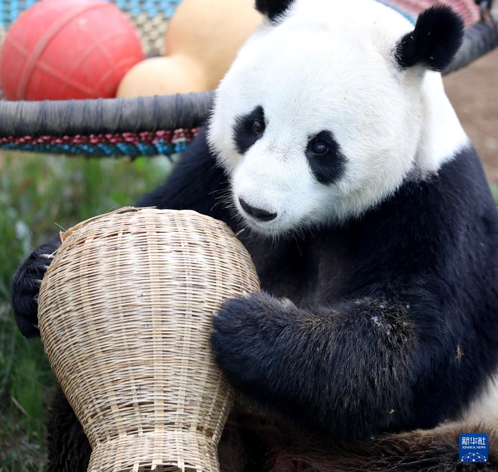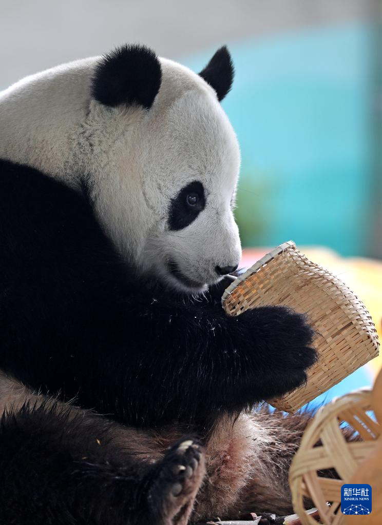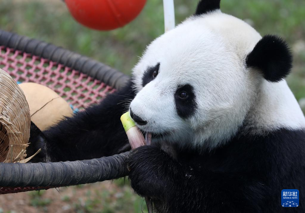 近日,辽宁地区持续高温,在饲养员的精心照料下,鞍山动物园里的5岁大熊猫“刚刚”一边吹着空调降温,一边享用新鲜竹子、水果、胡萝卜、蜂蜜等,清凉度夏。
