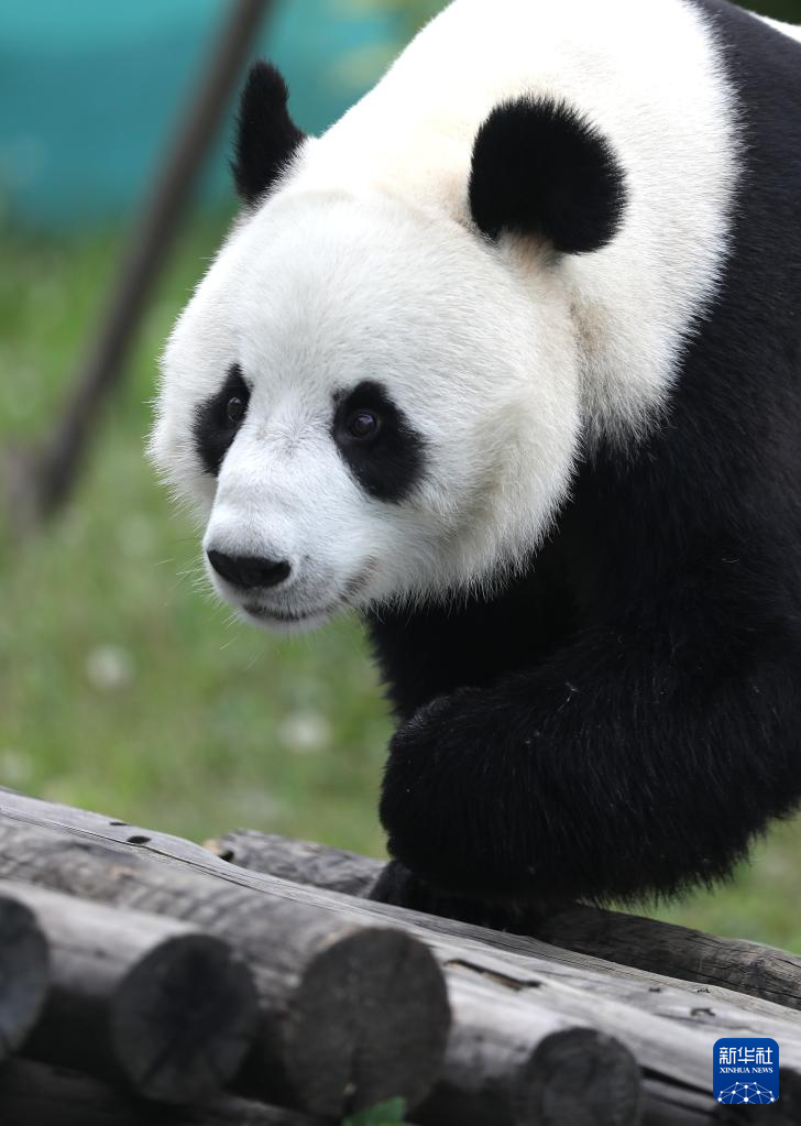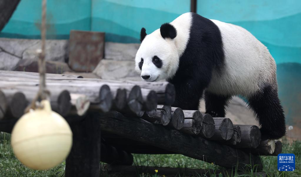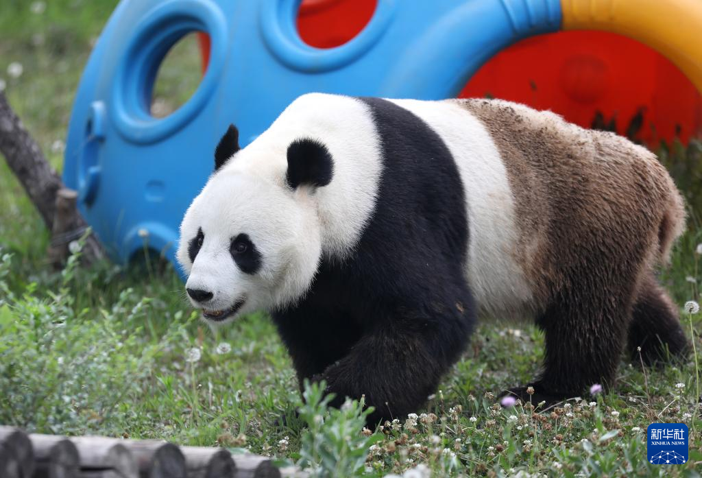 6月26日,“刚刚”在鞍山动物园熊猫馆里悠闲散步。