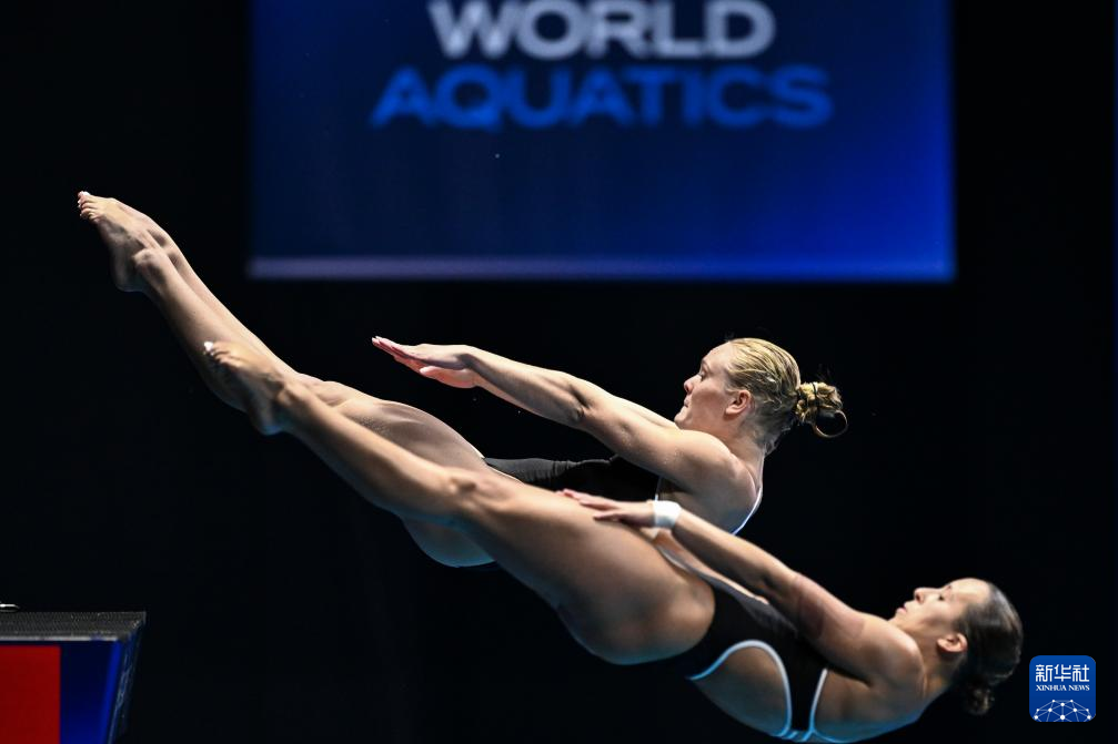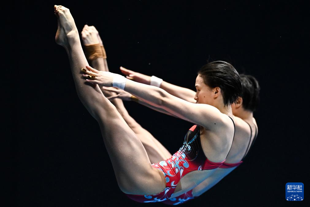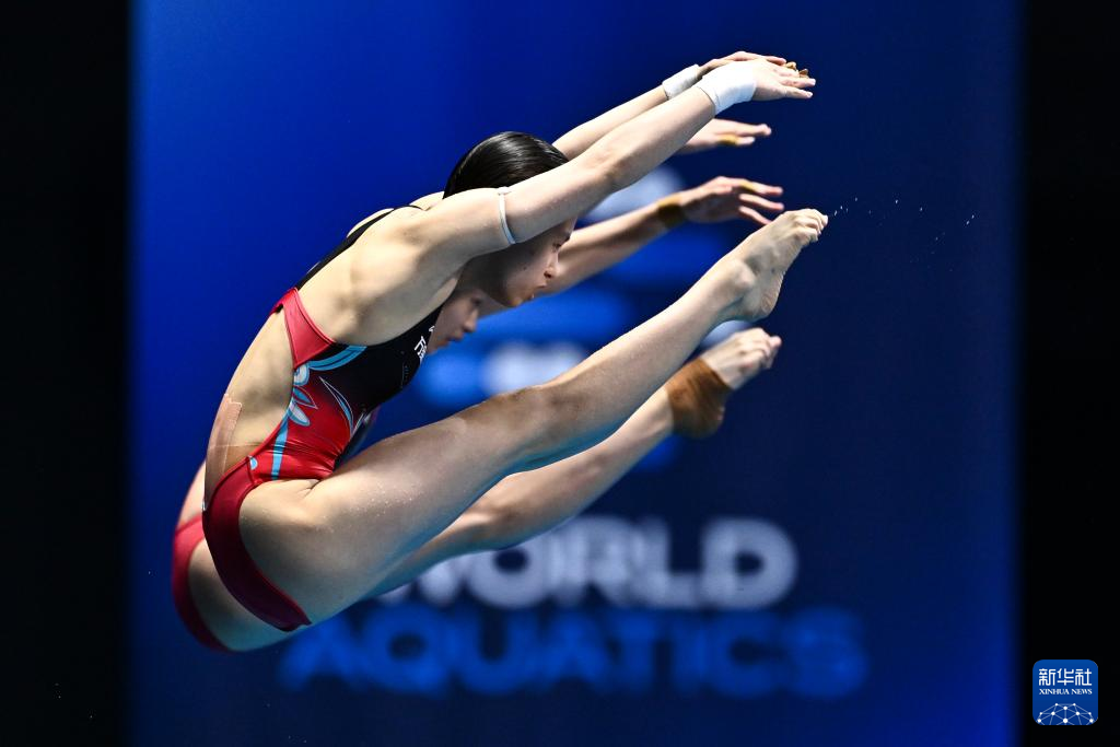 当日,2023年世界游泳锦标赛跳水女子双人10米台决赛在日本福冈举行。