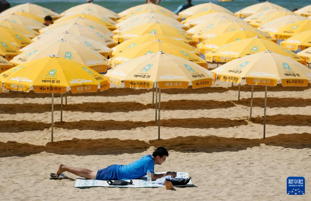8月3日,市民在韩国釜山的海滩休闲。
