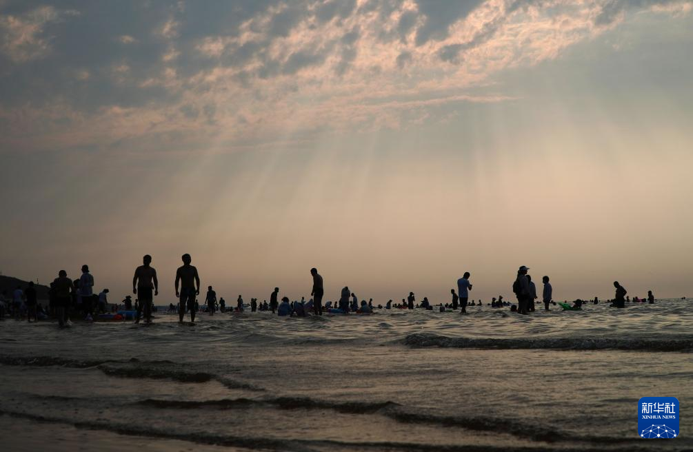 8月16日,游客在山东省莱州市三山岛的海滨风景区游玩。