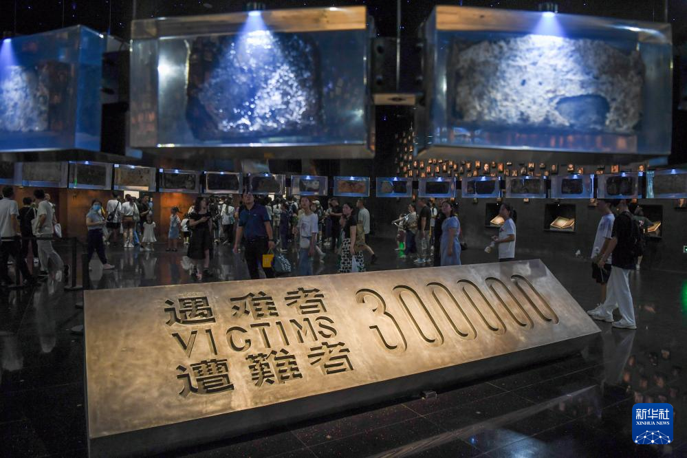 8月15日,参观者在侵华日军南京大屠杀遇难同胞纪念馆参观。