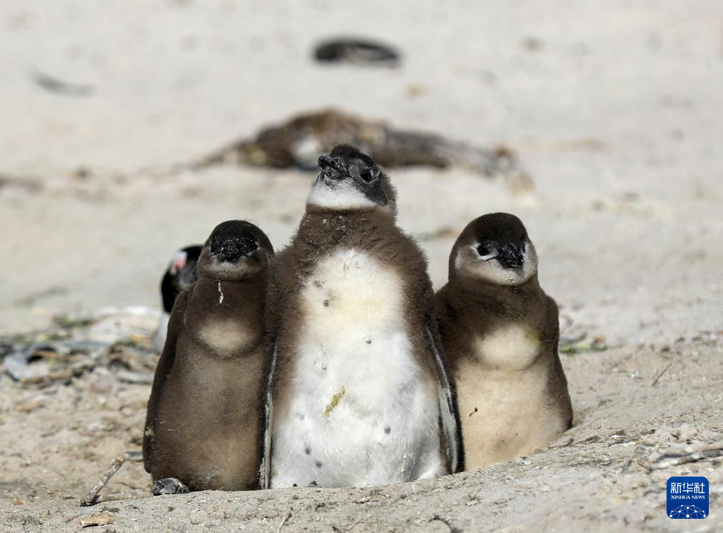 这是8月12日在南非西蒙镇的博尔德斯海滩上拍摄的非洲企鹅。