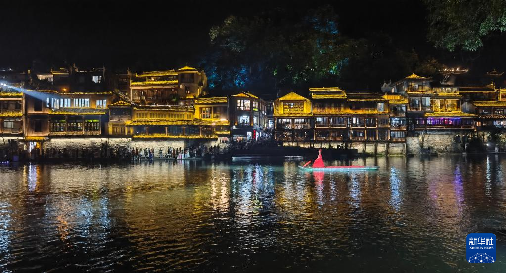 8月25日拍摄的凤凰古城沱江夜景。