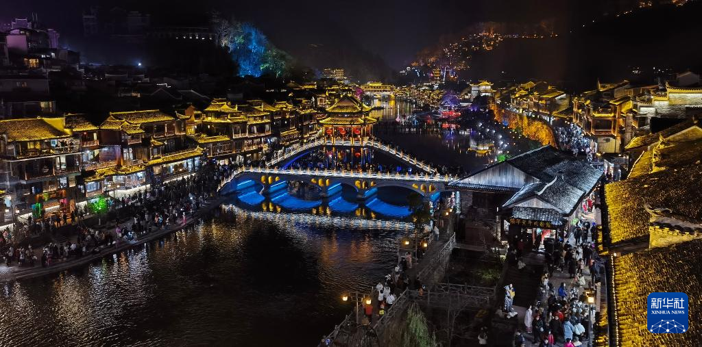 拍摄的凤凰古城沱江夜景。