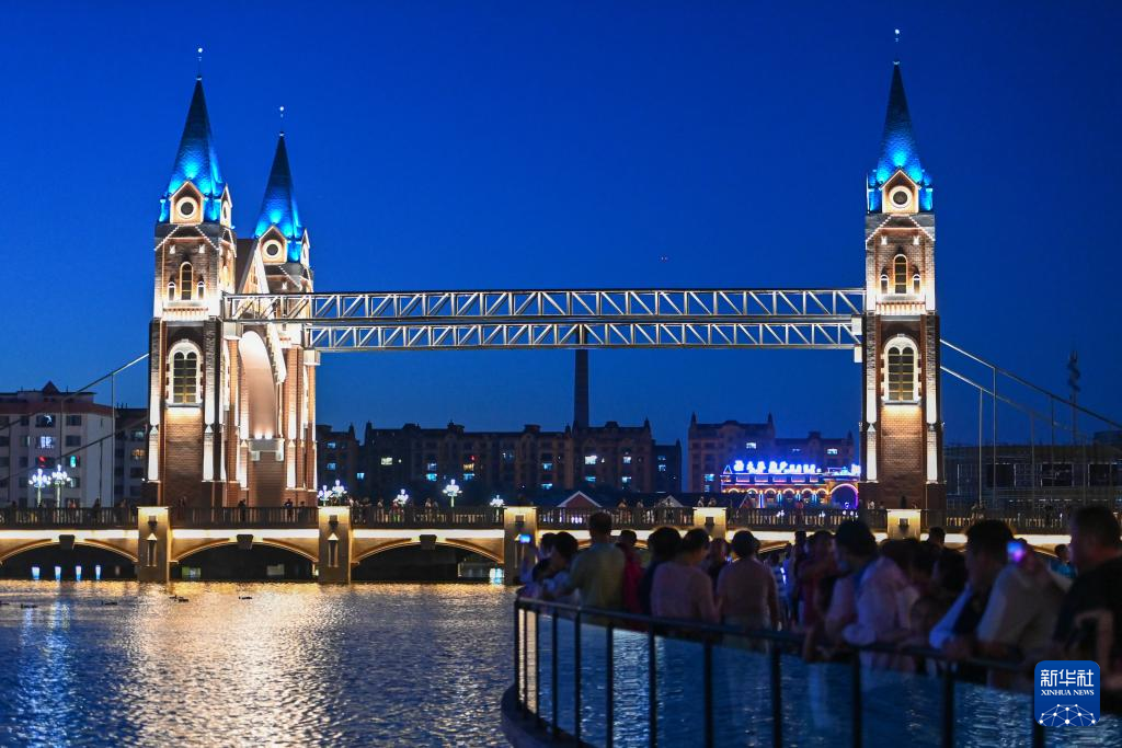 游客在新疆布尔津县七彩河休闲旅游度假区观光游览(7月18日摄)。