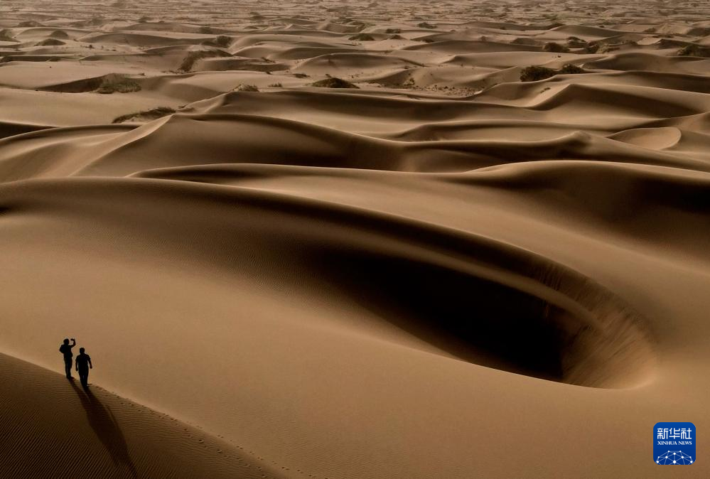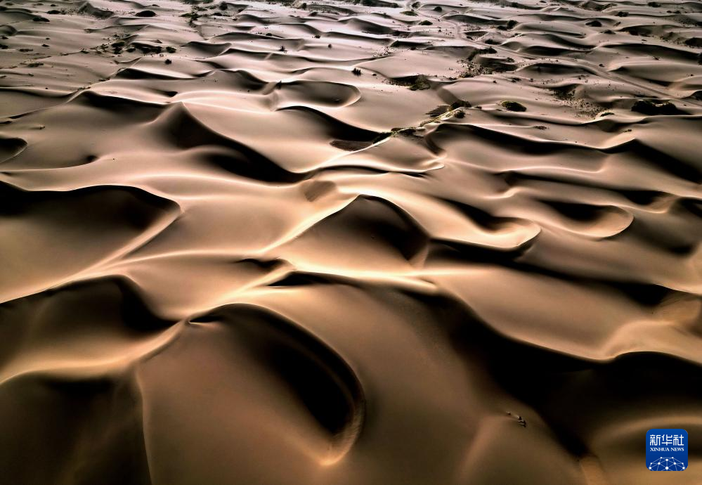 这是9月7日在新疆喀什地区麦盖提县N39°沙漠旅游景区拍摄的沙漠风光(无人机照片)。