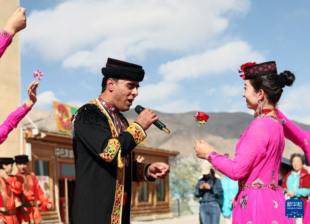 新疆塔什库尔干塔吉克自治县(以下简称“塔县”)地处帕米尔高原东麓,平均海拔4000米以上。拜合提亚尔·居马汗和妻子古丽巴努尔·库尔恰克就职于塔县文工团。拜合提亚尔毕业于新疆艺术学院,主修歌唱专业;古丽巴努尔毕业于新疆喀什艺术学校,擅长舞蹈。这对年轻伉俪因歌舞结缘相识,成为人生伴侣,并用所学专业传承优秀传统文化、展示帕米尔高原风情。