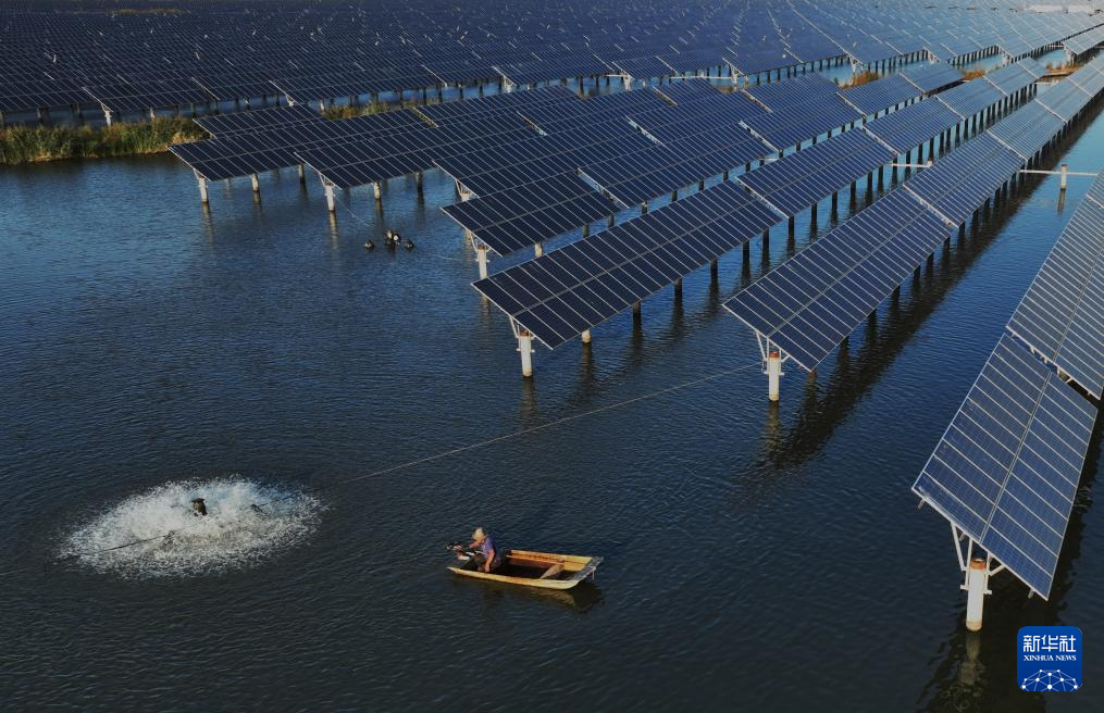 这是9月19日拍摄的大庆油田星火水面光伏电站局部(无人机照片)。