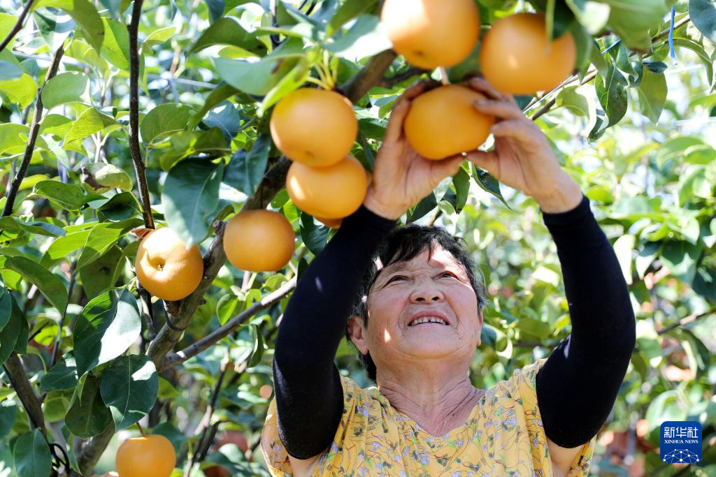 9月17日,在山东省莱西市南墅镇,农民在采摘秋月梨。