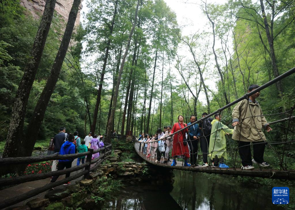 10月3日,游人在湖南张家界国家森林公园游玩赏景。