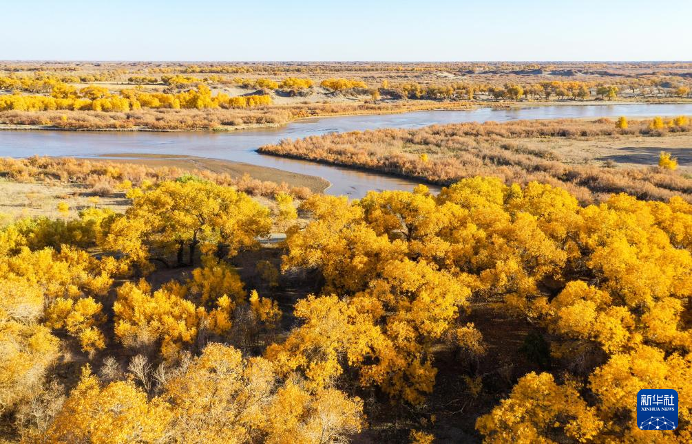 金秋时节,内蒙古自治区阿拉善盟额济纳旗的胡杨林披上“金装”。