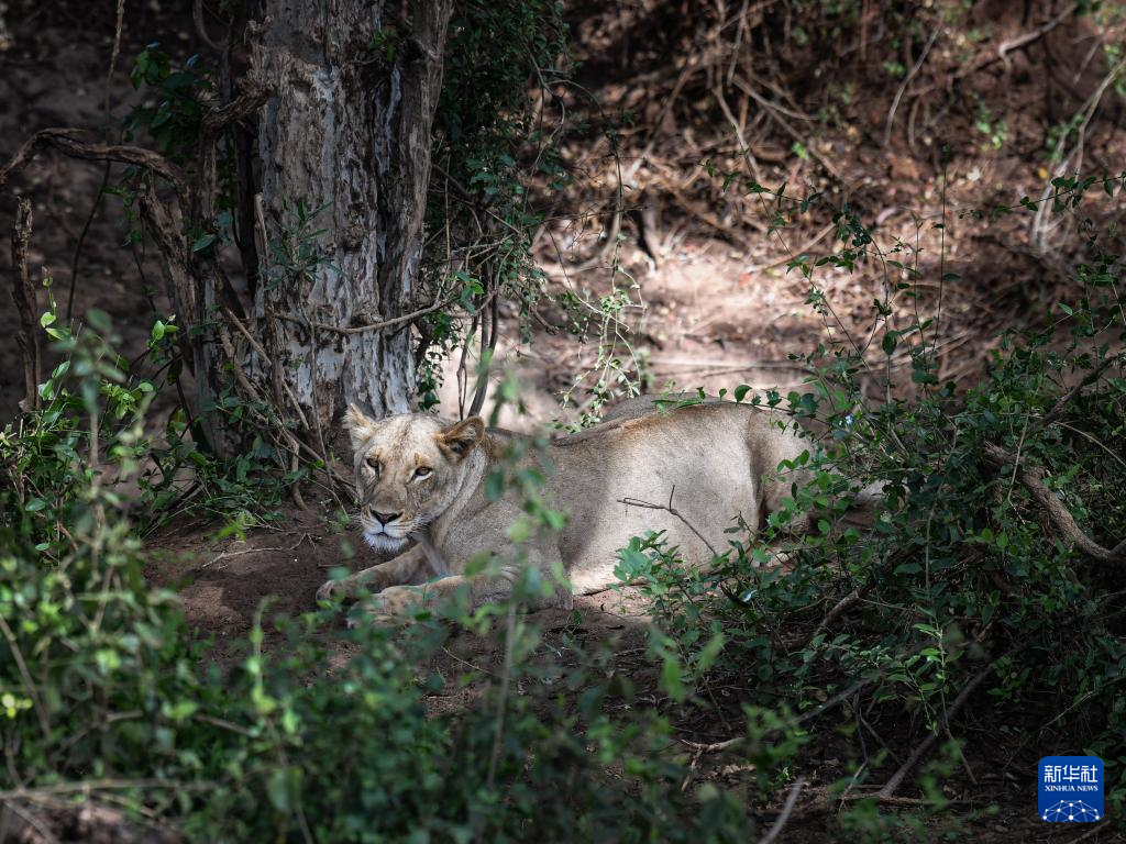 这是10月28日在肯尼亚塔伊塔-塔韦塔郡泰塔山野生动物保护区内拍摄的狮子。