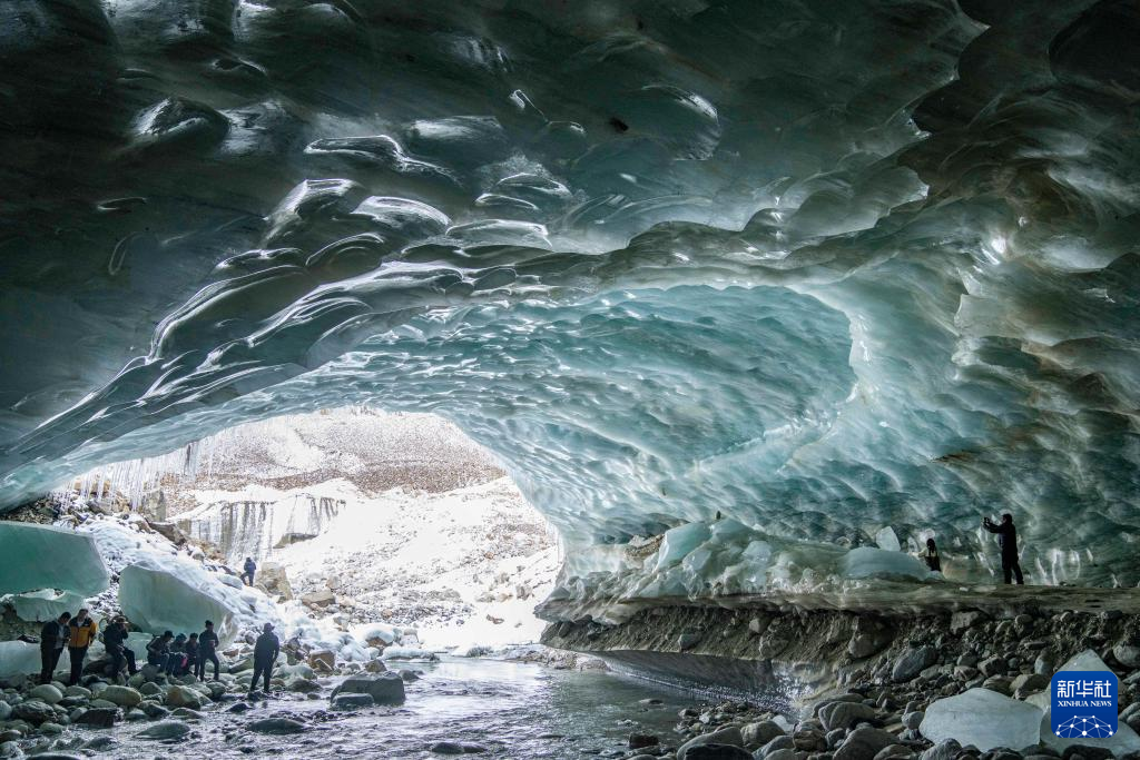 这是在边坝县边坝镇普玉一村附近拍摄的贡嘎冰洞一景(10月27日摄)。