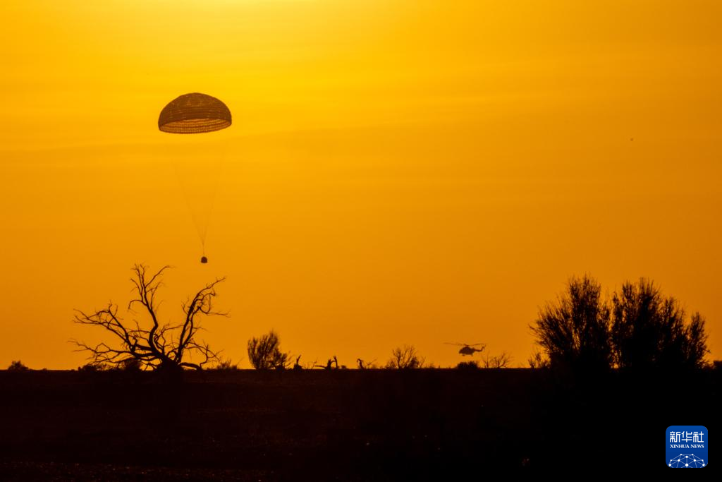 10月31日,神舟十六号载人飞船返回舱在东风着陆场成功着陆。