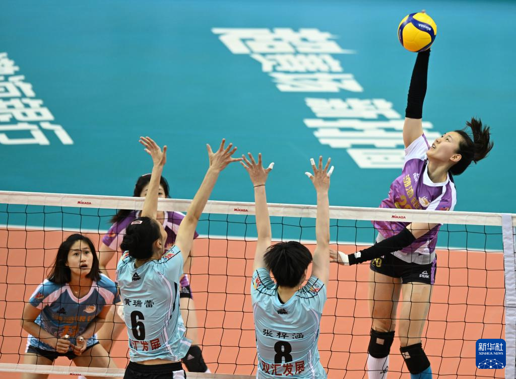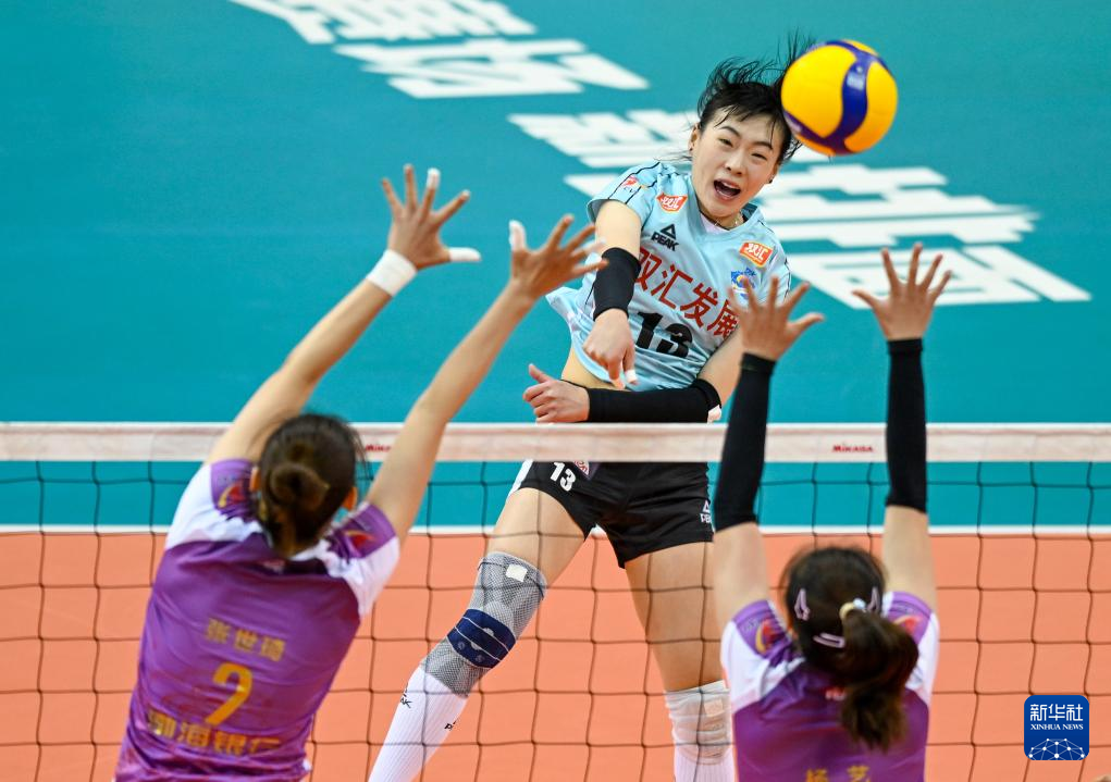 当日,在2023-2024中国女子排球超级联赛第一阶段小组赛A组比赛中,天津渤海银行队主场以3比0战胜河南双汇队。