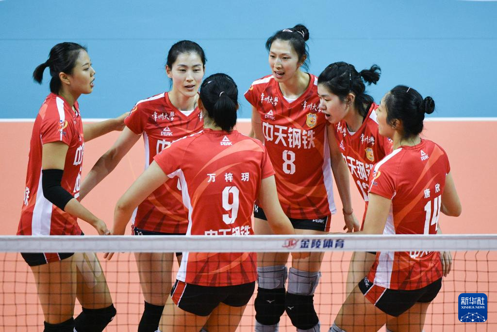 当日,在江苏常州举行的2023-2024赛季中国女子排球超级联赛第一阶段小组赛B组比赛中,江苏中天钢铁队主场以3比0战胜江西上饶奥飞队。