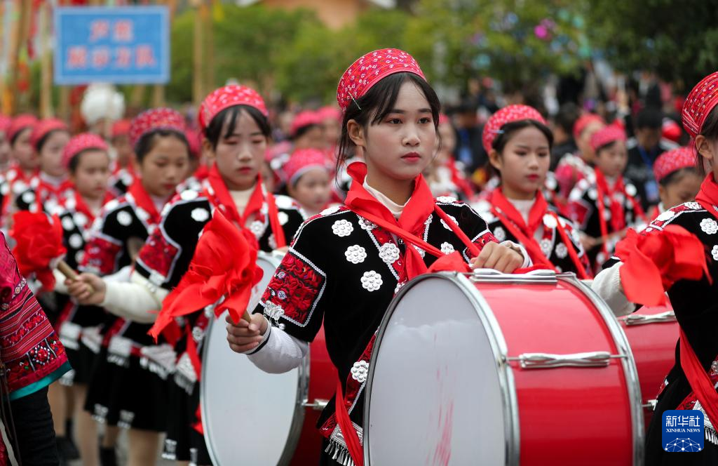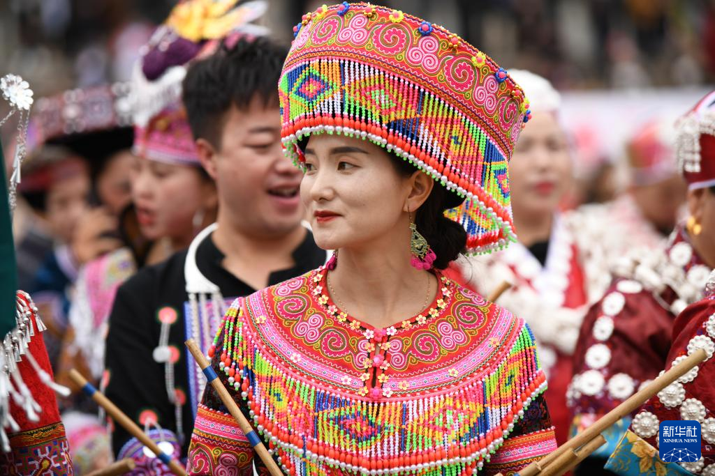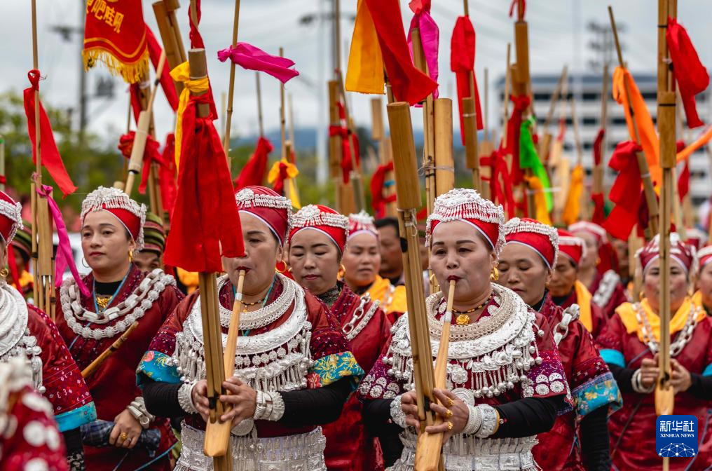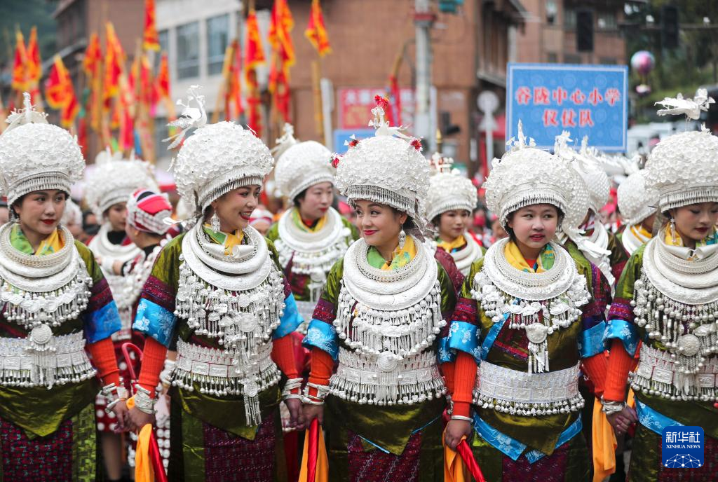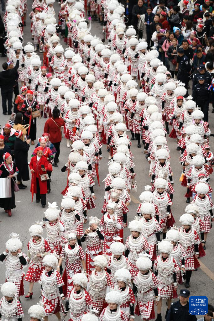 当日,贵州省黔东南苗族侗族自治州黄平县谷陇镇迎来芦笙节。当地苗族群众身着盛装,载歌载舞欢度节日,祈祷来年风调雨顺、五谷丰登。