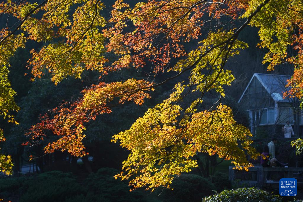 初冬时节,江西庐山风景区彩叶树种竞相变色,进入赏枫季。五彩斑斓的庐山“枫”景吸引游客前来观赏。