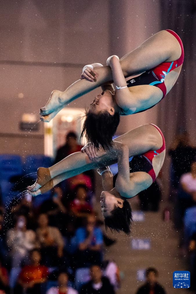 当日,在武汉体育中心举行的2023年全国跳水锦标赛暨巴黎奥运会、多哈世锦赛选拔赛女子双人10米跳台决赛中,全红婵(广东海印队)/陈芋汐(上海队)以354.66分的成绩获得冠军。