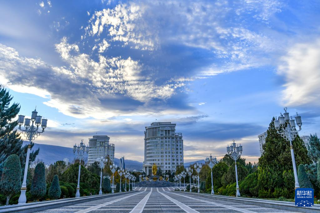 这是11月26日在土库曼斯坦首都阿什哈巴德拍摄的街景。