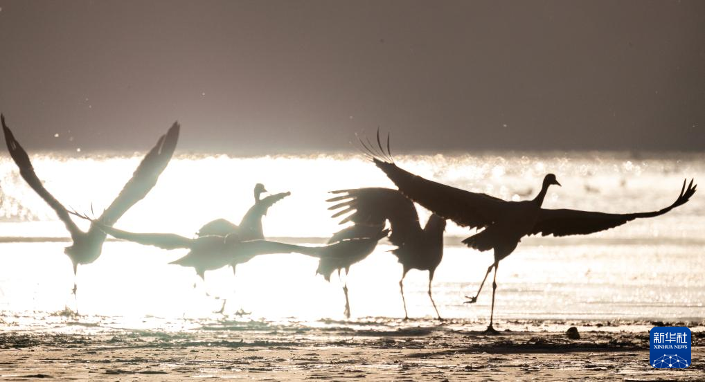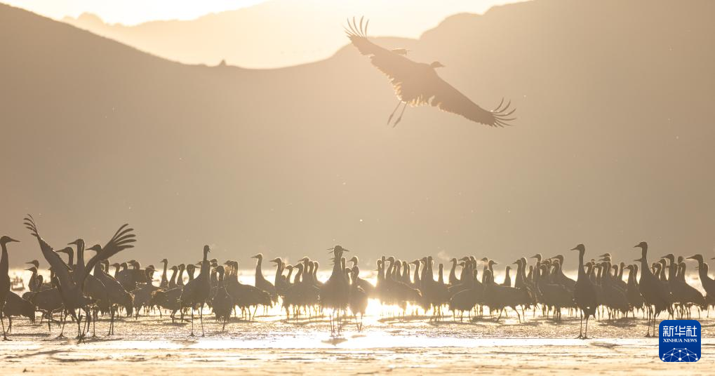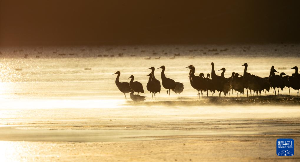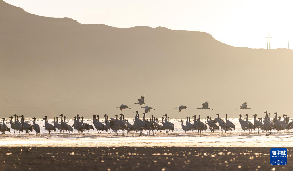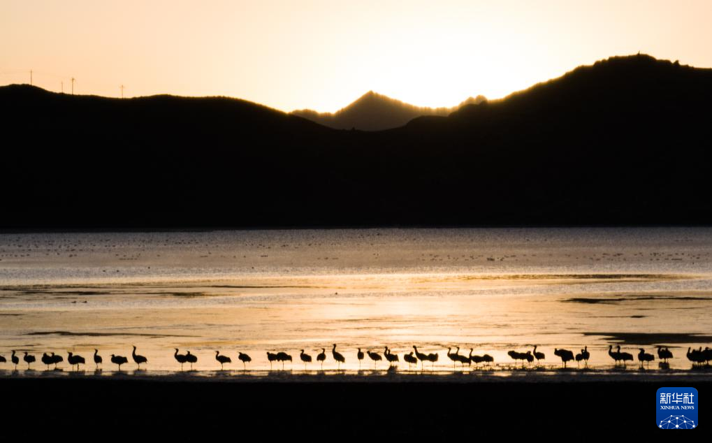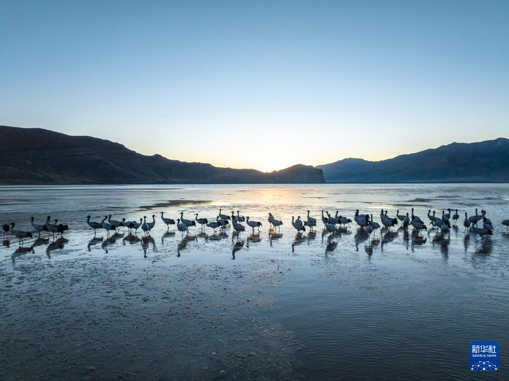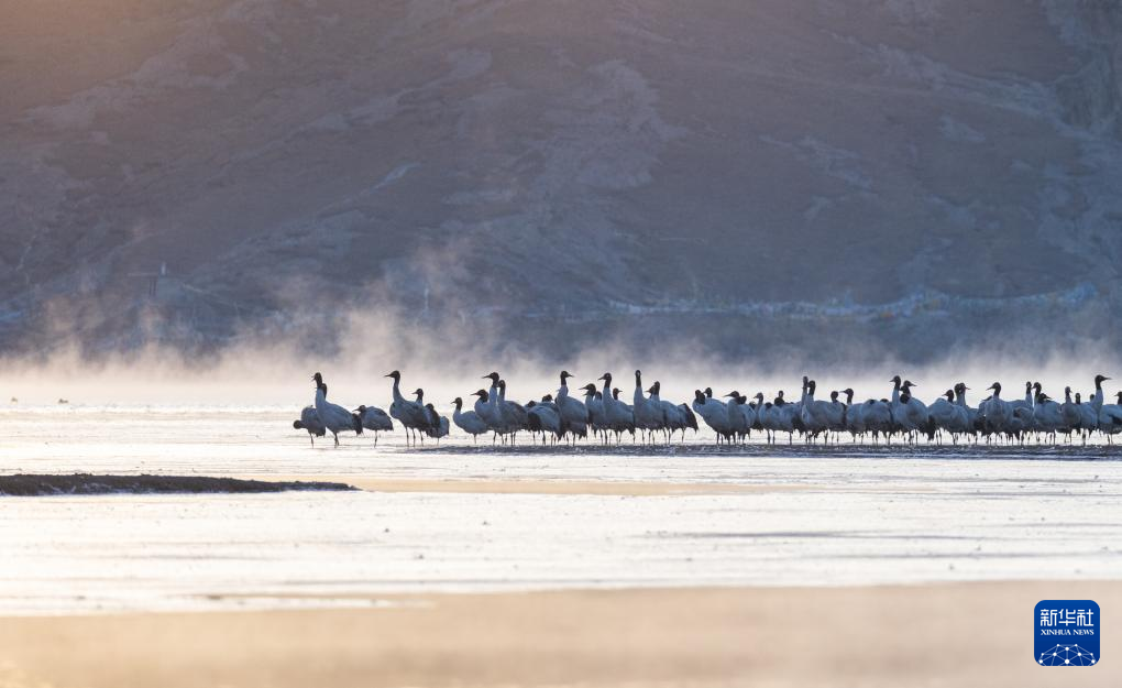 拉萨北部的林周县平均海拔约4200米,是黑颈鹤的主要越冬地之一。清晨的阳光洒在林周县虎头山水库,水面波光粼粼,鹤影婀娜多姿。