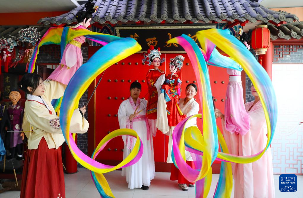 1月14日,在山东省莱西市,木偶艺术团的演员们在排练木偶戏。