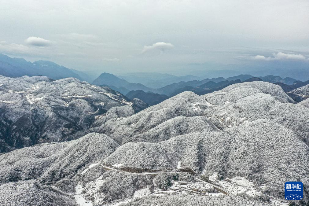 近日,随着新一轮寒潮来袭,位于重庆境内的巫山山区迎来新年首场降雪。群山银装素裹,一派雪域风光。